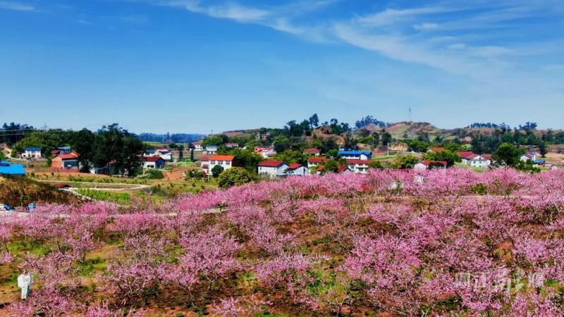 阳春三月春满园,位于资中县鱼溪镇的五指山农旅康养生态园里花果飘香、鱼跃浅塘,春天的盎然生机引得客人纷至沓来。