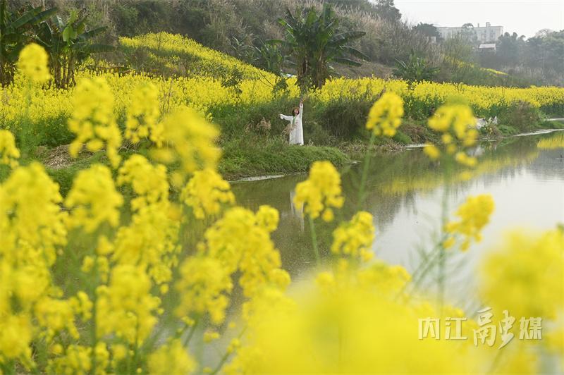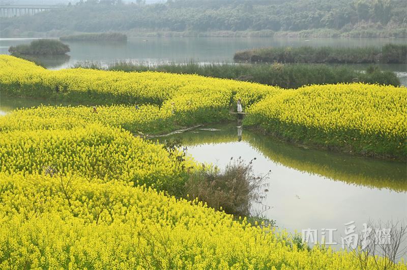 随着气温逐渐回升,内江各地的油菜花如约绽放,为春天增添了一抹绚丽的色彩。3月10日,内江经开区靖民镇沱江社区(原尖山村)多多岛以及东兴区富溪镇凤凰村太平坝的连片油菜花海,吸引了众多市民和游客前来打卡。