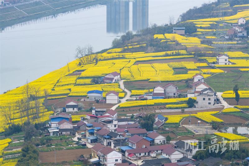 而在东兴区富溪镇凤凰村太平坝,油菜花的盛开同样为这片土地增添了无限生机。金黄色的花海与村庄、河流交相辉映,宛如一幅天然的田园画卷。村民们穿梭在花海中,忙碌而有序地劳作,脸上写满了丰收的喜悦。游客们则三五成群,漫步在花海间,感受着春日的温暖与宁静。