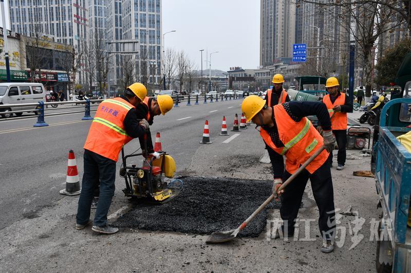 目前,道路修补工作高效有序推进,已完成临江路、中兴路、红牌路等道路的修补工作,累计修补路面约150平方米、人行道约360平方米。