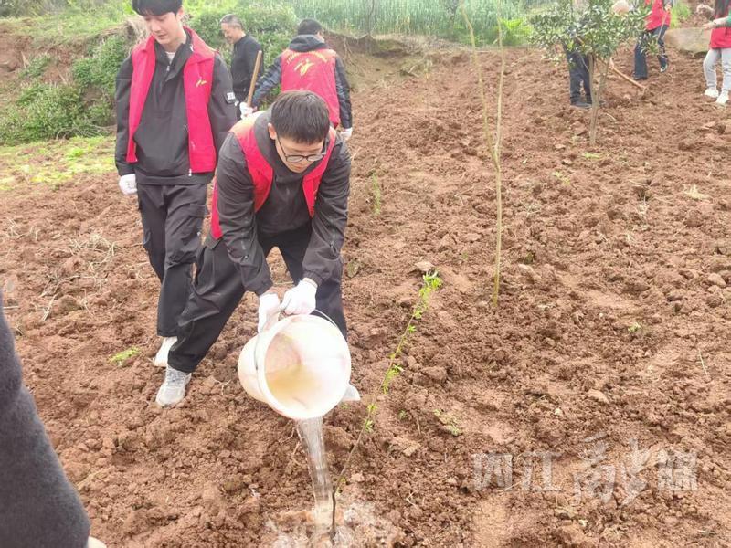 活动现场,在专业林业人员的耐心指导下,志愿者们有条不紊地领取树苗和植树工具。现场分工井然有序,配合默契:有人紧握铁锹,奋力铲土;有人扶苗,确保树苗直立;有人往返提水,为新栽树苗送去“生命之源”。整个现场,呈现一派热火朝天的劳动景象。