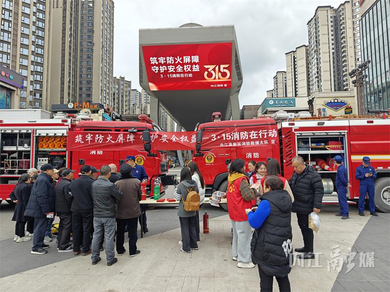 3月13日,内江高新区消防救援大队结合“3·15”国际消费者权益日,在万晟天街开展了一场消防产品真假宣传活动。
