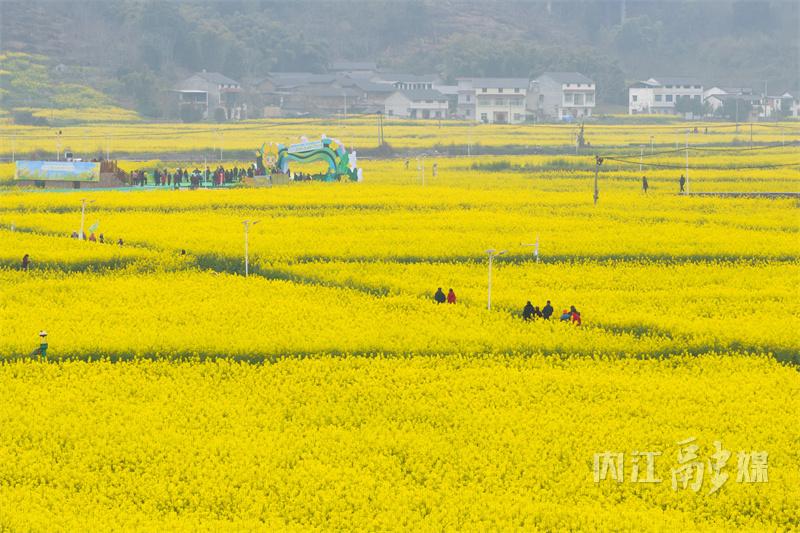 近日,内江市威远县新场镇老场村的万亩油菜花海迎来了最佳赏花期。金黄色的花海在春风中摇曳生姿,吸引了众多游客前来观赏,共同感受春天的气息和大自然的馈赠。