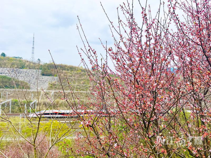 最近,内江梅岭公园的美人梅进入盛放末期,即将与市民暂别。不少市民趁着好天气邂逅这片烂漫花海,其中,美人梅与高铁同框的独特画面,更是成了公园里一道亮丽风景。