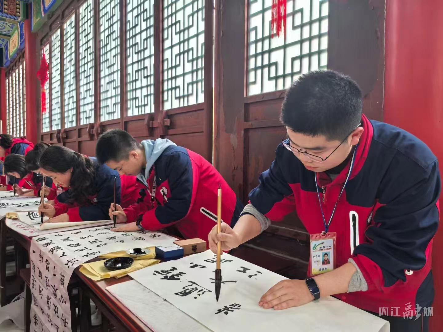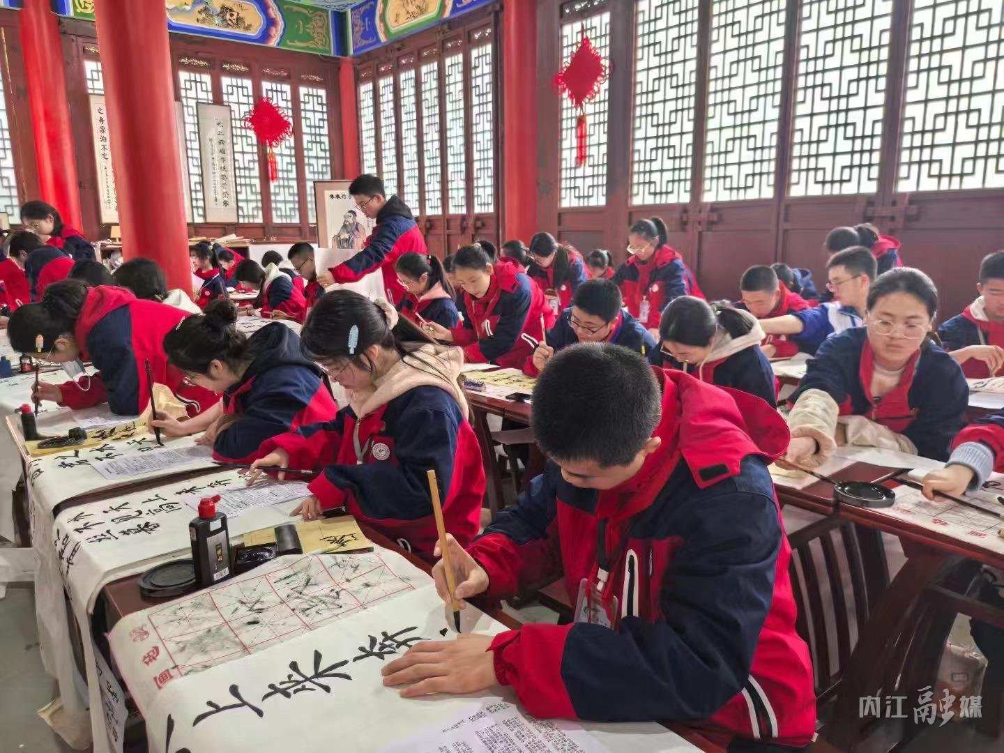 在弘扬中华优秀传统文化的时代浪潮下,隆昌一中为全面加强新时代学校美育工作,特别组织开展此次大赛。大赛现场,学生热情高涨,在摆放整齐的笔墨纸砚前,全情投入创作。