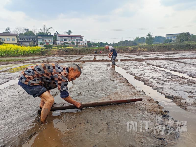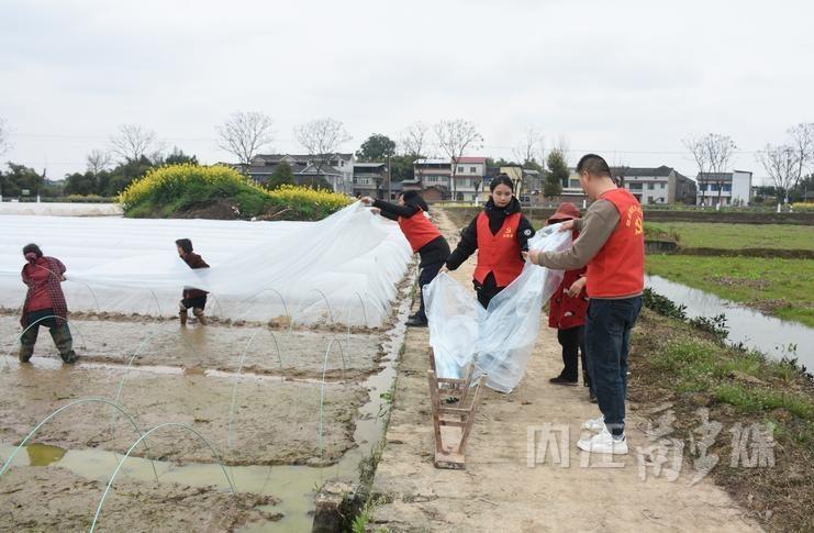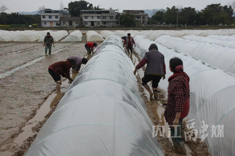 春耕时节,广袤乡村一派繁忙景象。3月16日,隆昌市胡家镇解放村党总支书记钱红带领村民紧张有序地平田、撒谷种、插竹架、盖薄膜。