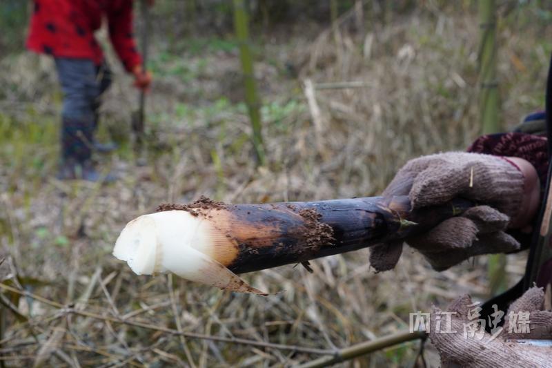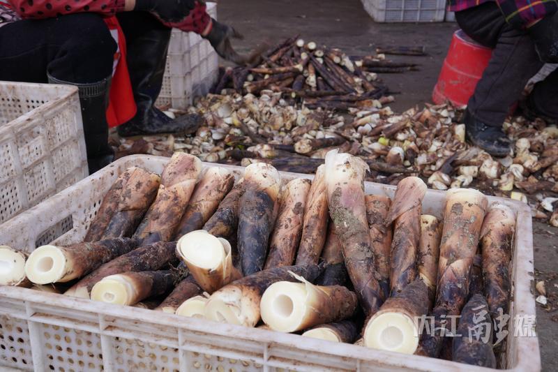 在竹林的另一边,村民们正忙着将挖出的雷竹笋进行分拣、称重、装箱、打包。随后,将被发往内江城区、成都市区等地,让更多人品尝到这份来自甜城的“春味”。