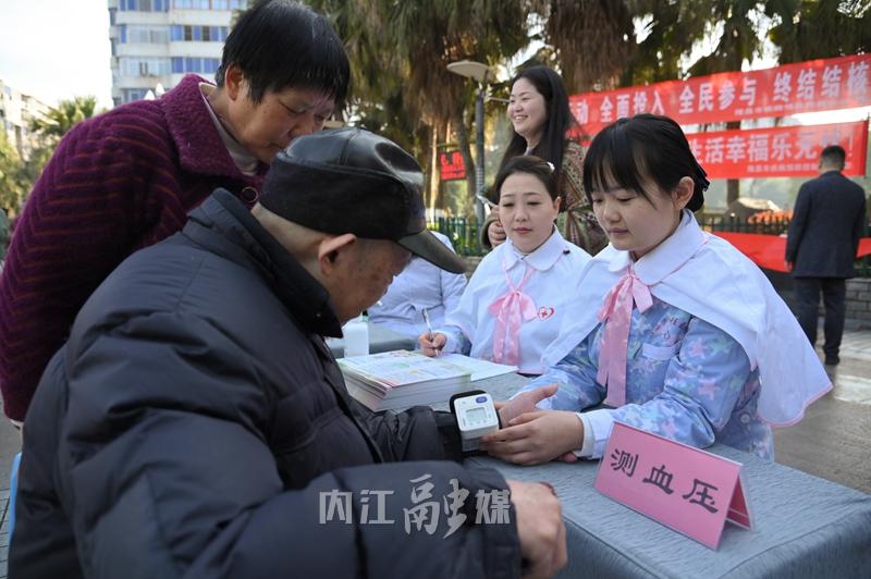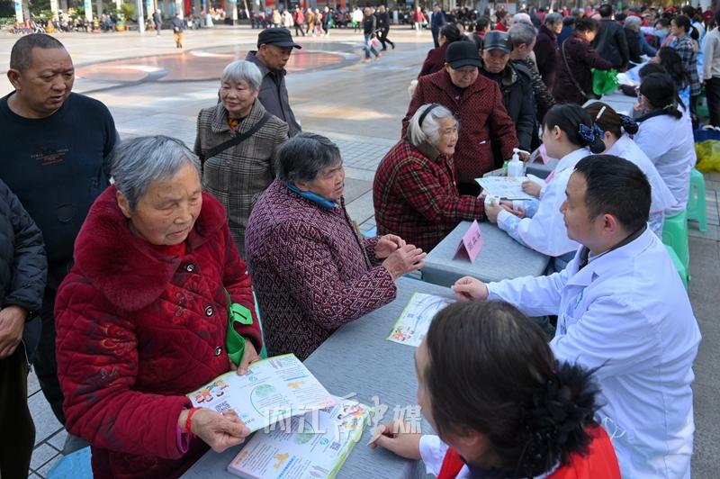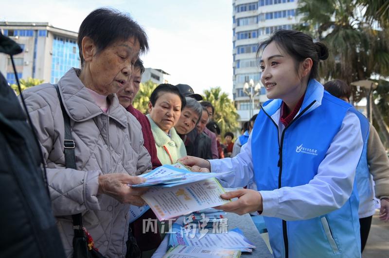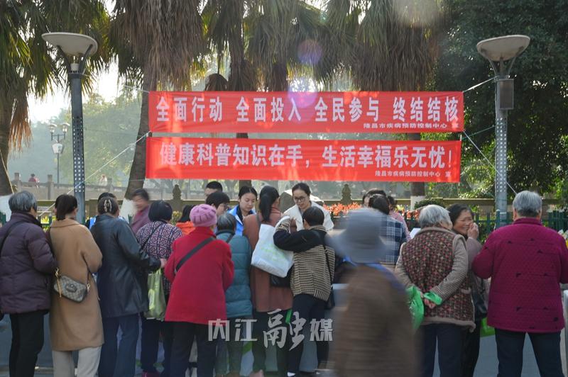 “结核病作为慢性传染病,危害波及甚广,主要通过飞沫传播。当传染性肺结核患者咳嗽、打喷嚏时,会产生大量含有结核菌的飞沫……”当日上午,来自隆昌市疾病预防控制中心、多家市级医疗卫生单位以及城南、城西社区卫生服务中心的志愿者,早早来到东门广场“摆摊”,为过往群众分发宣传单、讲解结核病防治知识,活动现场一片“赶集”般的热闹景象。