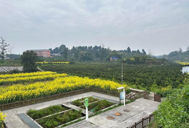 原本排放生活污水的沟渠里不见污水流动,而是纵横交错的水管连通家家户户,生活污水统一收集,经过污水处理站净化,实现循环利用,可作为日常生活用水,并滋养院落前近20亩血橙树。