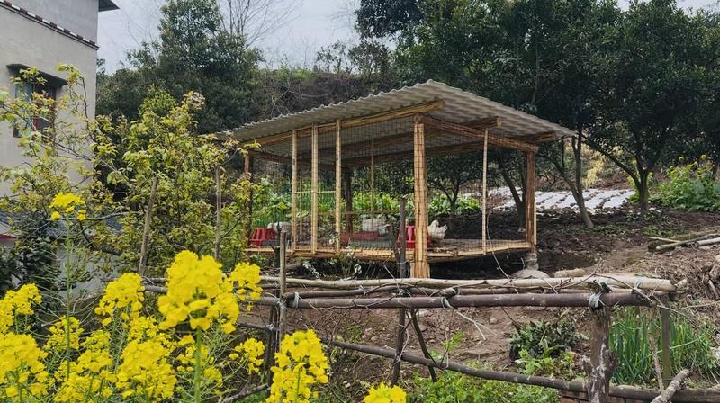 畜禽棚舍改造同样独具匠心,原木取代钢结构,与乡村氛围完美融合;抬高镂空的底面设计,不仅能保持棚舍干燥、减少异味,而且让粪便成为菜园、果园的优质肥料,实现资源最大化利用。