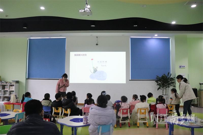 活动现场,志愿者生动讲述了经典绘本《田鼠阿佛》的故事。这个关于乐观与分享的暖心故事,讲述了田鼠阿佛在寒冬储粮将尽时,带领同伴感受阳光温暖、期待美好生活的动人情节。小朋友们听得入迷,不时举手提问,在互动中了解了小动物的生活习性。