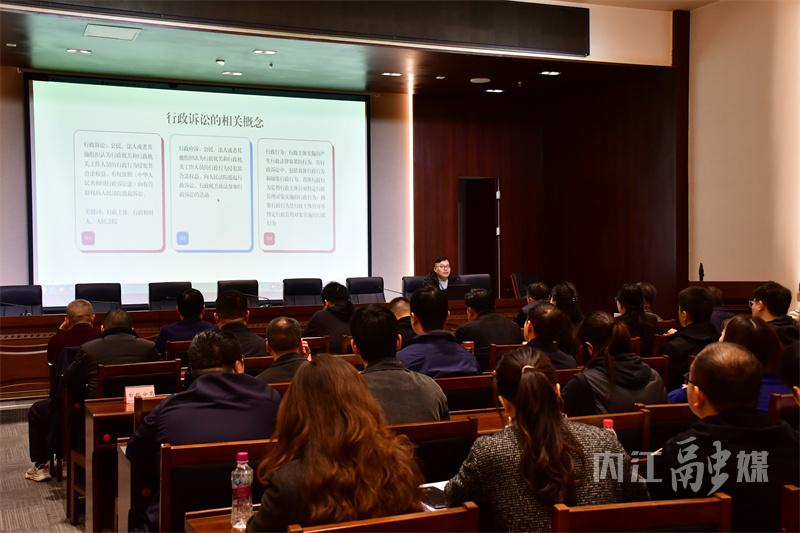 此次提升培训会邀请了内江市司法局行政复议与应诉一科科长袁壹为辅导老师。培训会上,袁壹从程序事项、实体事项、策略事项三个方面,围绕行政复议与应诉工作的相关法律法规、程序规范、实务操作技巧及案例解析等方面进行了讲解。