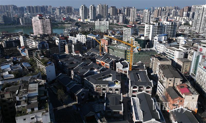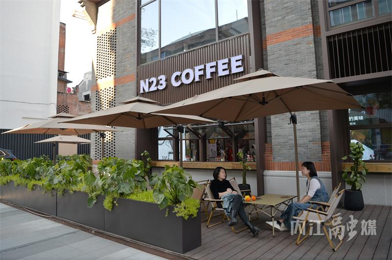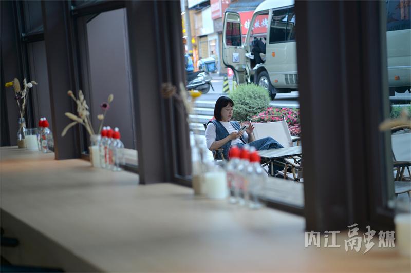 3月26日,内江市中区天津街,众多年轻人在街边喝咖啡、晒太阳。惬意的“慢时光”与街背后热闹的施工场景相互交织,奏响四方块的“重生”序章——