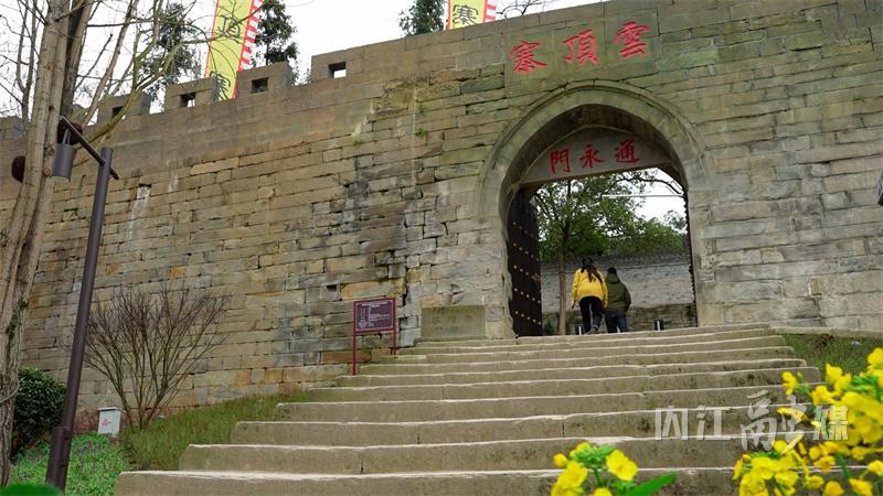 从云顶镇镇上的主路拐入旁边一条支路,翻过几道弯,就到了云峰村云顶寨寨顶,站在这里往下看,远处的泸县、自贡隐没在云层里,若不是三月一大片一大片的油菜花开得正酣,仿佛脚下踩着的便是云端。