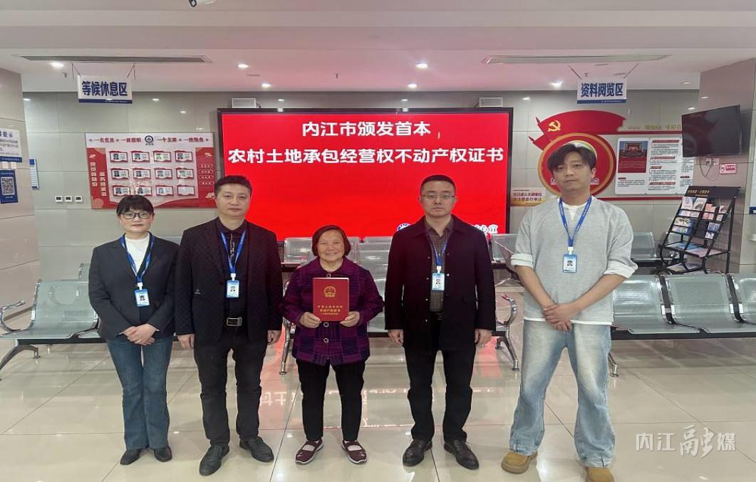 3月26日,资中县铁佛镇茶店子村四组村民赖水凤领到了农村土地承包经营权不动产权证书,这是内江市首本农村土地承包经营权不动产权证书,标志着资中县在农村土地制度改革中迈出重要一步。