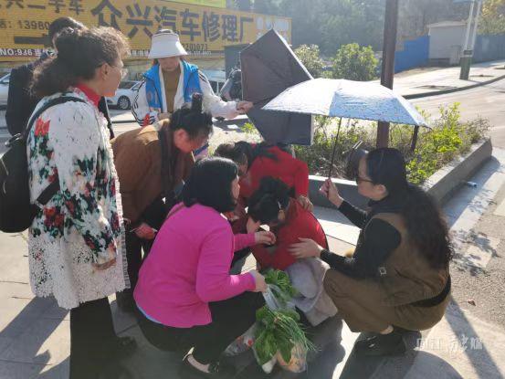 当日上午,脚盆田社区网格员任兴菊和罗雪燕像往常一样在辖区开展巡查,行至一处斑马线时,发现一名老人瘫倒在地,面色苍白,四肢无力。任兴菊迅速从随身携带的包中取出雨伞为老人遮挡烈日,罗雪燕则飞奔至仅有一街之隔的交通医院求助。前后不到3分钟,3名医护人员携带急救设备赶到现场,为老人测量血压、做心电图检查。经医护人员初步诊断,老人血压异常低下,需作进一步观察治疗。于是,任兴菊二人和在场居民协助医护人员将老人扶送至医院,随即联系其家属,告知老人的身体情况。