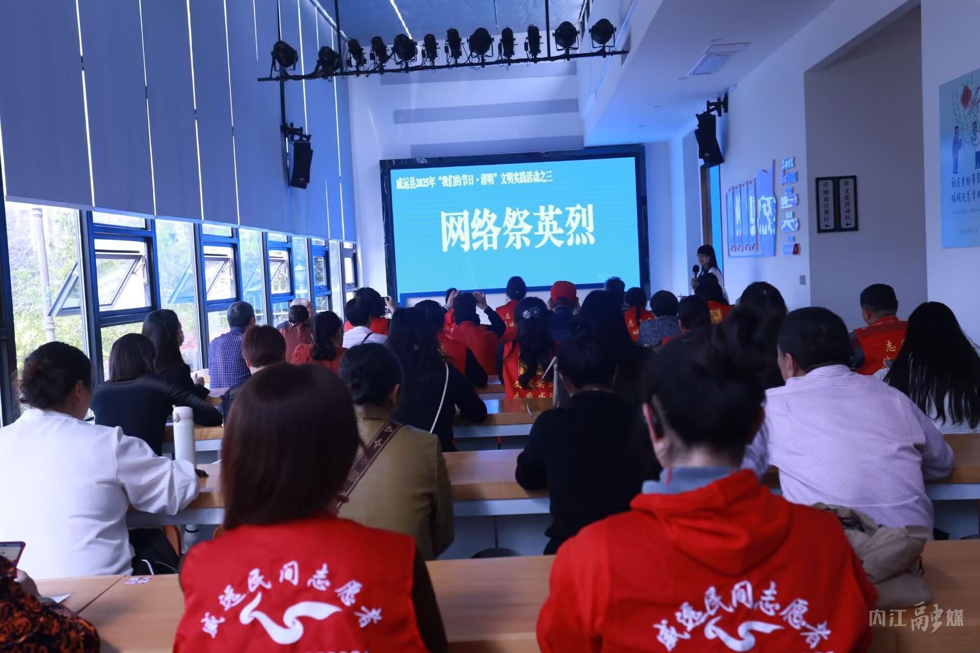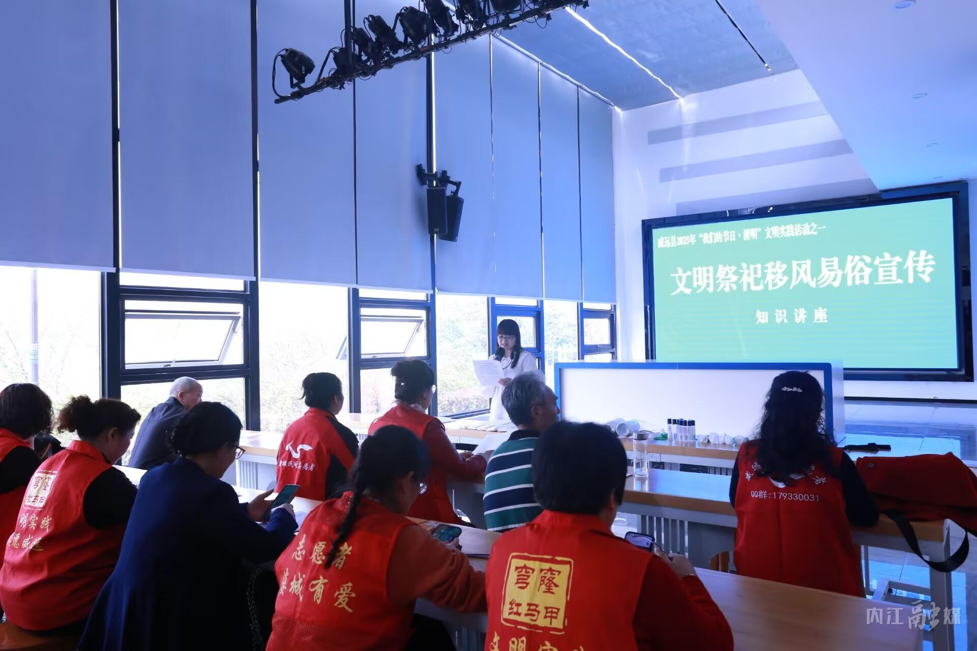 活动现场,专业讲师通过图文并茂的课件,系统讲解了传统祭祀方式对生态环境的影响,结合《威远县文明祭祀倡议书》,详细阐释了鲜花祭扫、网络祭奠等现代文明祭扫方式的时代价值。志愿者们认真聆听并参与互动问答,现场发放宣传资料200余份。