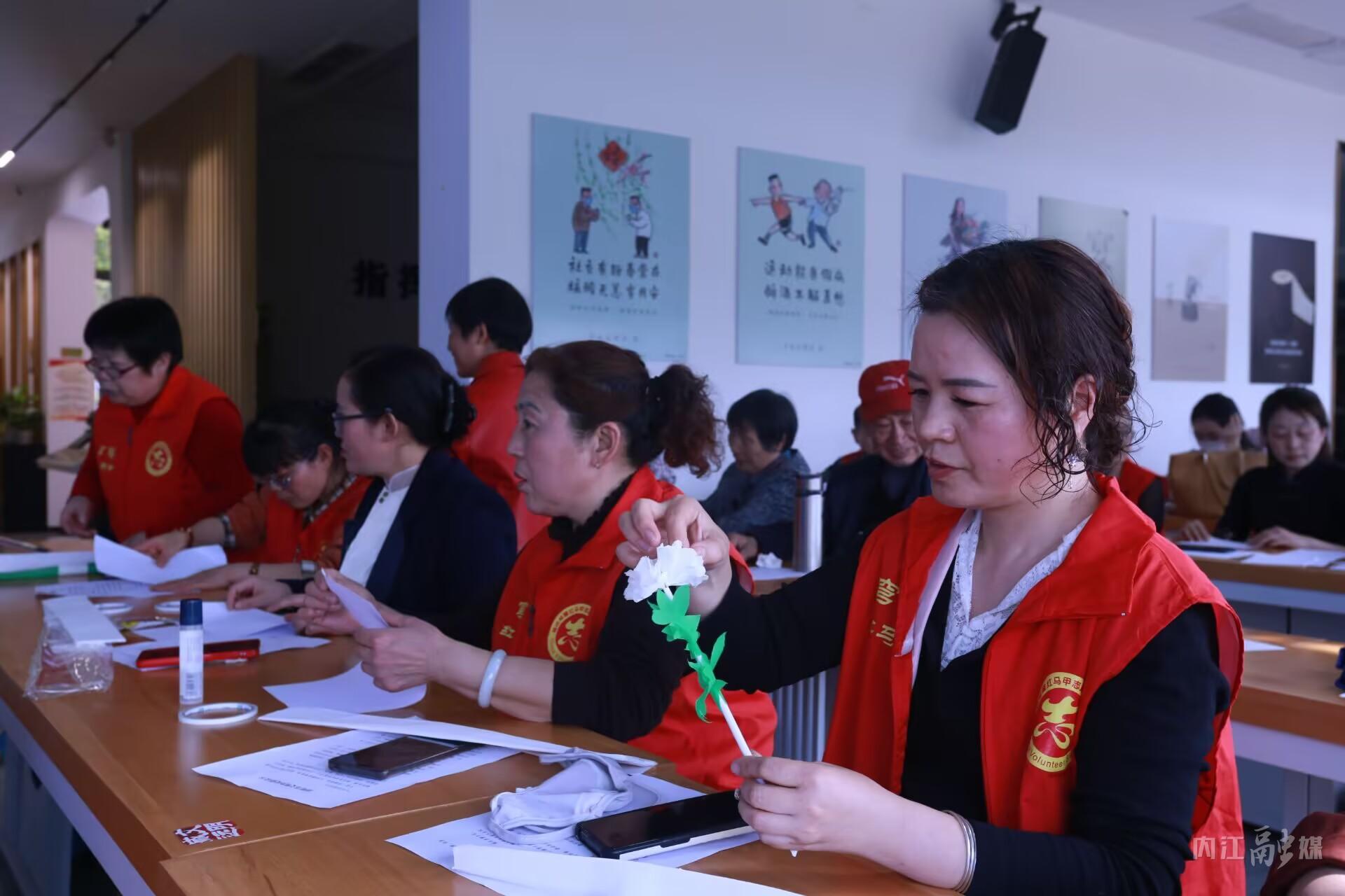 在手工制作环节,专业老师现场教学,指导志愿者们用环保纸张制作菊花、康乃馨等纸花。大家用心剪裁、精心粘贴,一朵朵素净的纸花承载着对英烈的深切缅怀。