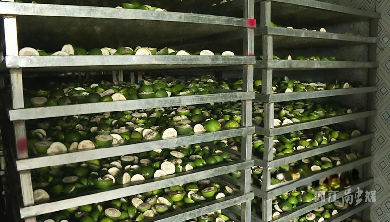 “我们一共新建了10个烘干房,每个烘干房可以容纳22个托盘,一次可以烘干16000斤鲜果。”余霆伟自豪地说,“相比之前,效率提高了近一倍。”