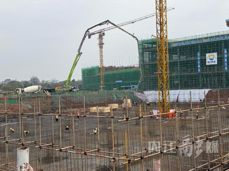 在成渝地区双城经济圈东兴区食品加工集中区(一期)项目现场,挖掘机、运土车等大型机械设备在项目各区域来回穿梭,不远处一栋栋厂房即将建成,现场一片繁忙景象。
