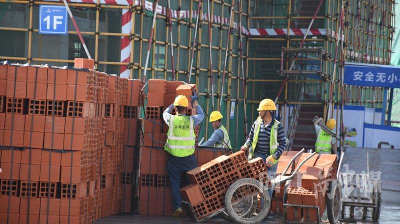 位于东兴经济开发区的青岛正望新能源等静压石墨制品制造项目现场,几栋现代化单体建筑,在阳光的照耀下熠熠生辉,工人分工明确,正在从事砌墙、设备安装等工作。