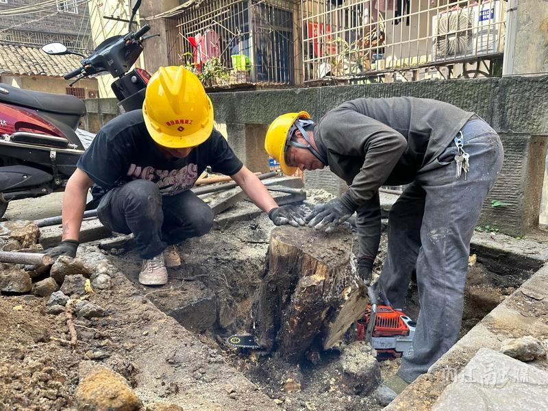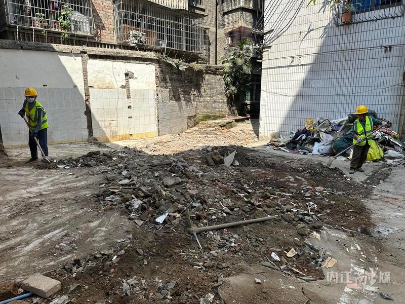 走进居民新村,施工人员正忙着凿地挖道,清理路旁枯死树木,为后续管道铺设清除障碍。与此同时,居民肖富全家的厨房和厕所违建被彻底拆除。肖富全说:“政府要求拆除,我定当支持配合。”他原本有一套20多平方米的住房,因房屋空间有限,便在住房外搭建了20平方米厕所和厨房。