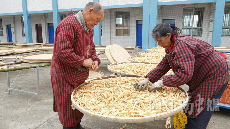 为合理利用土地资源发展乡村产业,当地因地制宜将何首乌、沙参等中药材种植作为推动乡村振兴的关键突破口,让种植户发“药财”。在沙参采挖、分拣、加工等环节,能提供就业岗位200余个。正在分拣沙参的村民王自琼笑着说:“在家门口务工,每天有70元收入,还不耽误照顾家里!”