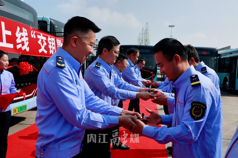 发钥匙、送平安符、定制贺卡,简短而热烈的仪式上,96辆新车集体鸣笛声上线。随着这批新能源公交上线运营,内江城区公交所有线路均实现了新能源车覆盖,正式迈入全域新能源化的新阶段,进一步助力低碳、智慧出行。