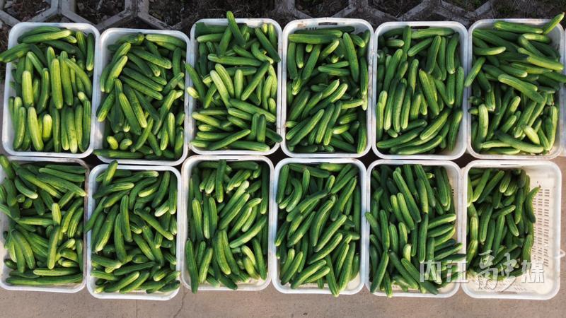 “咔嚓、咔嚓”,利落的采摘声此起彼伏。二十多位村民背着竹篓穿梭在齐腰高的藤蔓间,手指翻飞间,根根黄瓜落入篓中。“要赶在太阳升高前把熟透的黄瓜摘完,这样运出去才新鲜。”58岁的村民王大姐擦着额头的汗珠,篓里已码出小山般的黄瓜。棚外,运输车正待命发车,这批带着露水的黄瓜,将在12小时后出现在长沙、重庆的超市货架上。