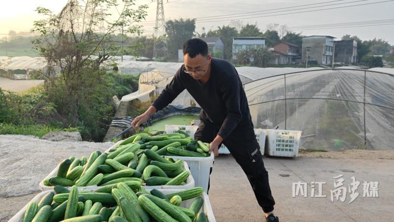 四月春风拂过沱江之畔,市中区永安镇下元村的蔬菜大棚里,一派生机盎然的丰收图景。4月8日清晨,记者走进林康种植场的黄瓜大棚,湿润的泥土气息和瓜蔓清香扑面而来,翠绿的黄瓜垂坠如帘,在晨光中泛着晶莹的光泽。