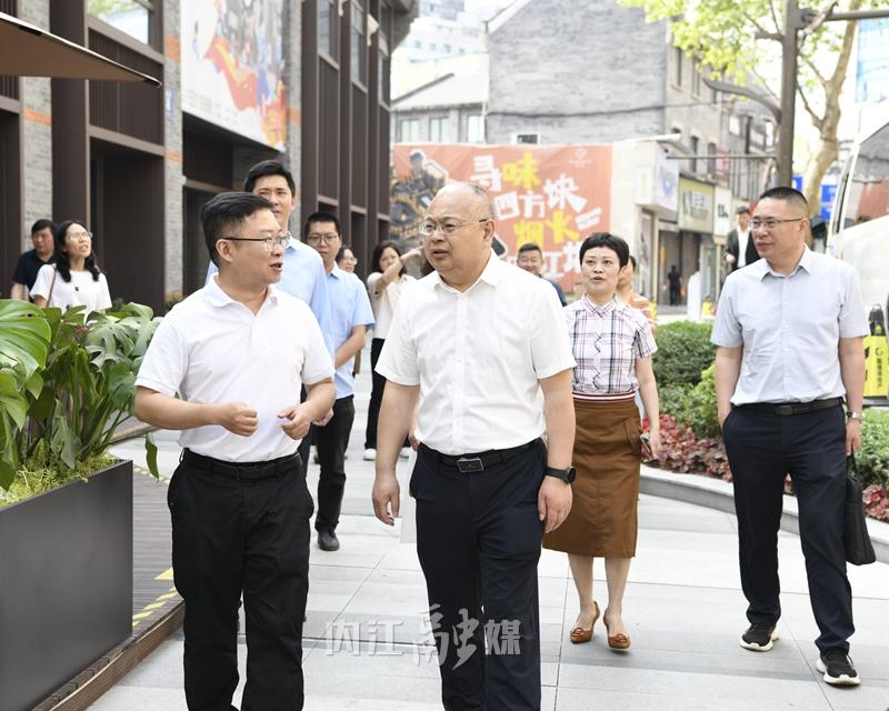 陈学兵一行前往内江万达广场、市中区四方块商业步行街调研,听取情况介绍,详细了解企业运行、消费新场景新地标打造、商业街区规划建设等情况。