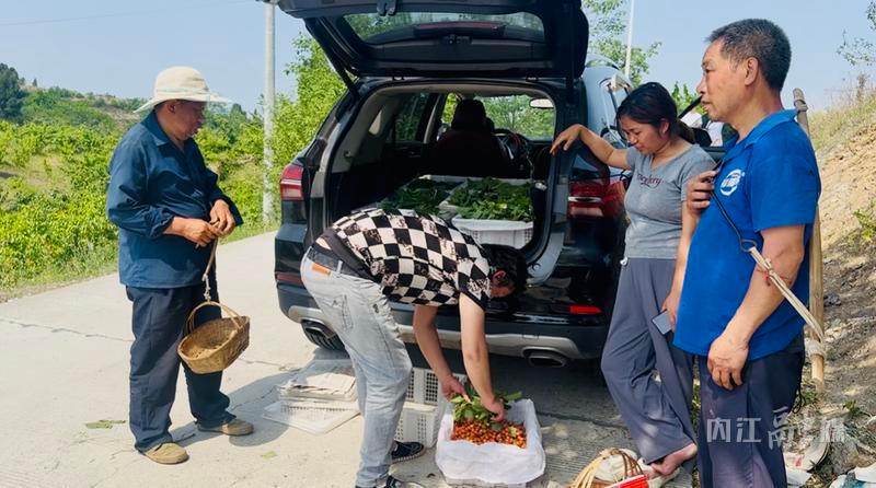 “每天收200斤左右,这里的樱桃上市早、口感好,我已经连续来收5年了!今天还有最后一筐,收满了就走,明天再来!”李涛一边称重一边说道,这批樱桃当日就能摆上自贡超市货架。