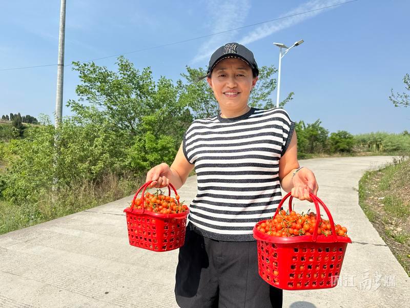 市民李梦丽带着1岁女儿从内江慕名而来。“和几个朋友一起过来的,果子又大又甜,带孩子体验采摘太合适了!”来自自贡的钟燕已是这里的“老熟客”,只见她将新鲜采摘的40斤樱桃仔细装箱。“今年天气好,樱桃格外香甜,正好送给亲友尝鲜。”