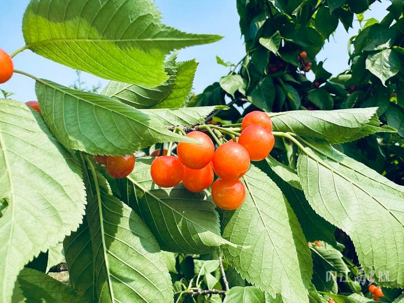 走进红红果园,笑语声与果香交织。放眼望去,漫山遍野皆是樱桃树,层层叠叠的枝叶间,红彤彤的果实如玛瑙般缀满枝头,蔚为壮观。