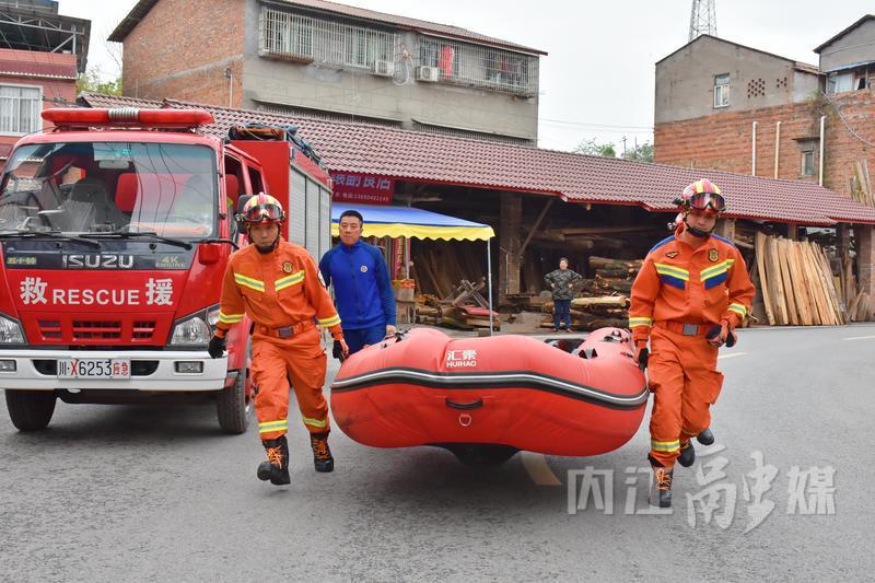 本次演练的虚拟背景是:4月24日,成都、资阳等地连降暴雨,导致东兴区境内多条河水位暴涨,小青龙河(田家段)发生超标准洪水,严重威胁沿江低洼地带群众生命财产安全。