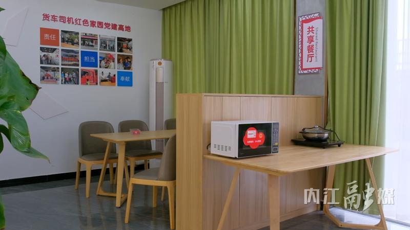 走进驿站,宽敞明亮的空间让人眼前一亮。驿站内部分区明确,设有前台接待区、休息区、餐饮区、洗浴区和学习阅读区,配备了饮水机、微波炉、电冰箱、免费按摩椅、淋浴设施等,为货车司机提供饮水、热饭、洗衣、淋浴、临时休息、手机充电、无线网络等一站式服务。