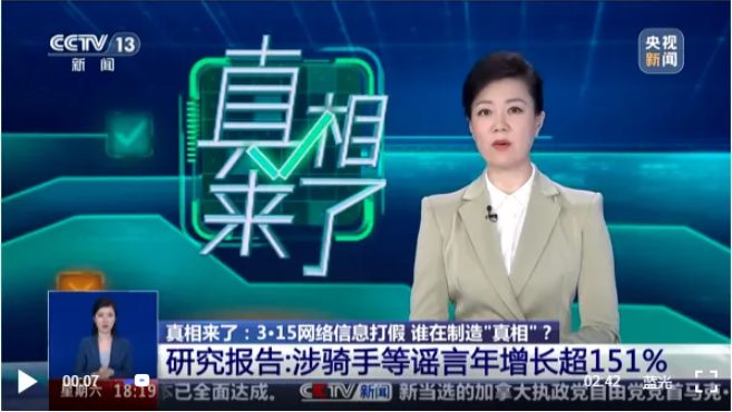 “涉外卖骑手、网约车司机等灵活就业群体的谣言数量激增,给相关企业声誉造成难以估量的损失,进而影响营商环境健康发展。”清华大学新闻与传播学院助理研究员张诗瑶表示。