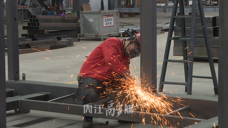 在黄土坡工业园区,四川盛昊钣金制造有限公司生产车间机器轰鸣,焊花闪烁,工人们正加紧赶制分节预制式电梯井道。