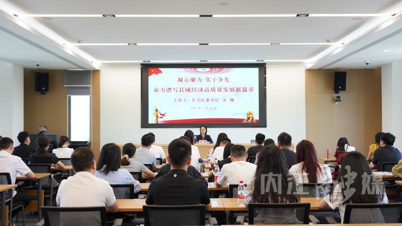 余梅以“凝心聚力 实干争先 奋力谱写县域经济高质量发展新篇章”为主题,紧扣习近平总书记在中青年干部培训班上的重要讲话精神,围绕年轻干部培育培养,立足东兴区发展和工作实践,结合自身学习,从“坚定不移贯彻落实习近平总书记关于县域发展的重要论述,不断增强推动县域经济高质量发展的责任感使命感紧迫感”“时刻保持清醒敏锐头脑,深刻认识当前发展环境面临的复杂变化”“辩证看待东兴发展态势,牢固树立推动县域经济高质量发展的信心决心”“准确把握东兴发展路径,夯实筑牢县域经济高质量发展的‘四梁八柱’”“努力提升干事创业本领,为推动东兴县域经济高质量发展作出新的更大贡献”五个方面,为全体参训学员上了一堂生动形象、深入浅出、发人深省、激励斗志的课。