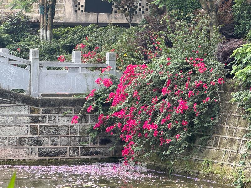 5月18日,记者走进人民公园看到,蓝花楹如云似霞,紫色的花朵密密麻麻地挂满枝头,微风拂过,花瓣轻轻飘落,仿佛下了一场浪漫的花雨。三角梅热情似火,红色的花朵簇拥在一起,在绿叶的衬托下显得格外娇艳,它们沿着围栏、顺着墙壁肆意生长,展现出旺盛的生命力。鸡冠刺桐灿若骄阳,一串串橙红色的花朵形似鸡冠,高高地挺立在枝头,在阳光的照耀下闪耀着迷人的光彩。这些花儿相互交织,构成了人民公园专属夏日的诗意美景,吸引了众多市民前来打卡拍照。