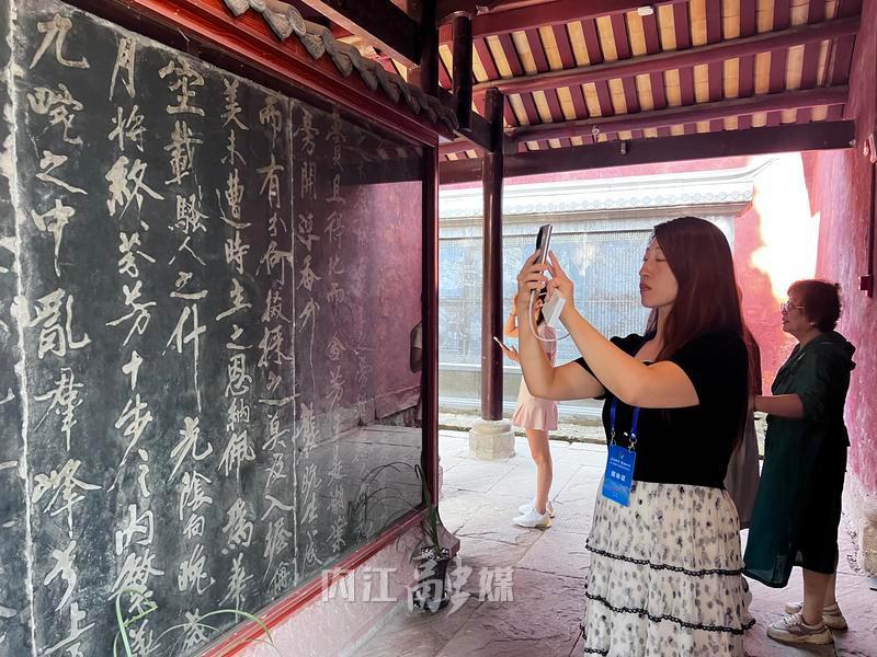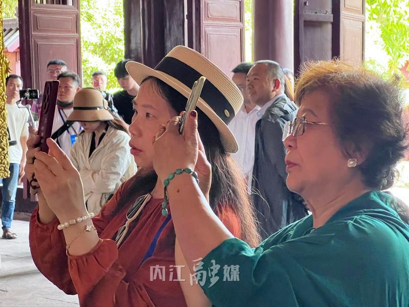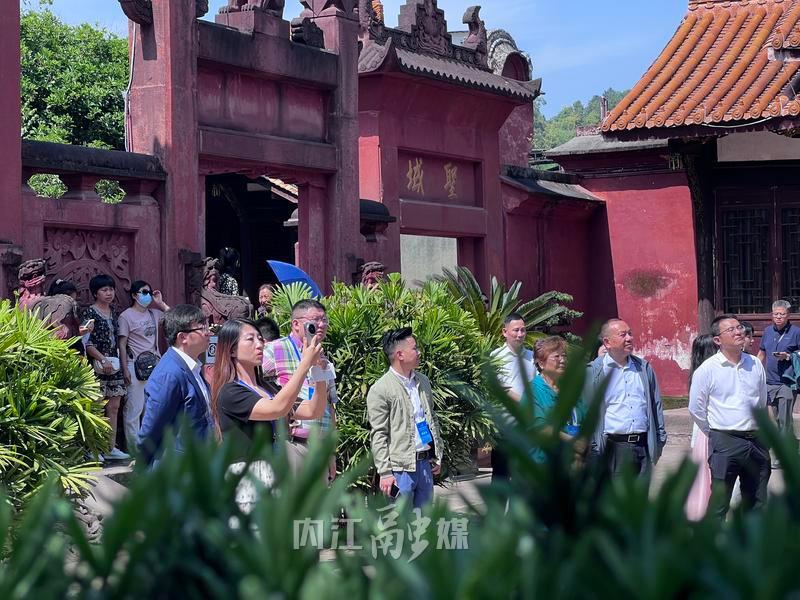 采访团的第一站来到资中文庙。加拿大、新西兰、瑞典等地的海外华文媒体记者、涉侨中央媒体记者、省级主流媒体记者一行17人,实地探访内江悠久的人文历史。