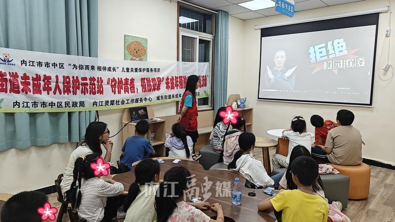 近日,内江市市中区“为你而来 相伴成长”儿童关爱保护服务项目开展“守护青春,预防犯罪”主题活动。活动先后在市中区城东街道、玉溪街道、全安镇的未成年人保护示范站举行,为特殊困难儿童的健康成长注入“法治力量”。
