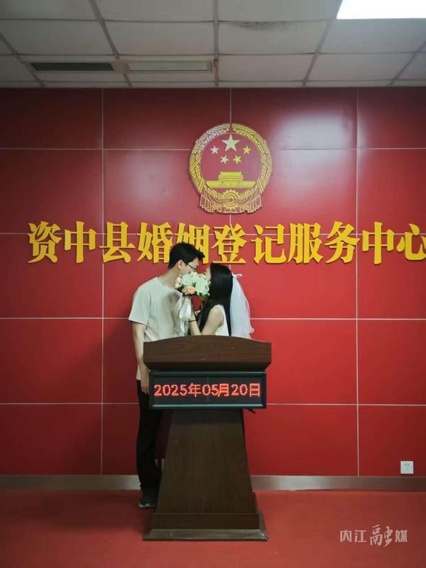 5月20日,资中县民政局在县婚姻登记中心创新开展“相伴一生 情暖夕阳”主题集体婚礼活动,将婚姻登记服务与婚俗改革宣传有机融合,为77对新人提供登记服务的同时,为8对金婚伉俪举办温馨纪念仪式。