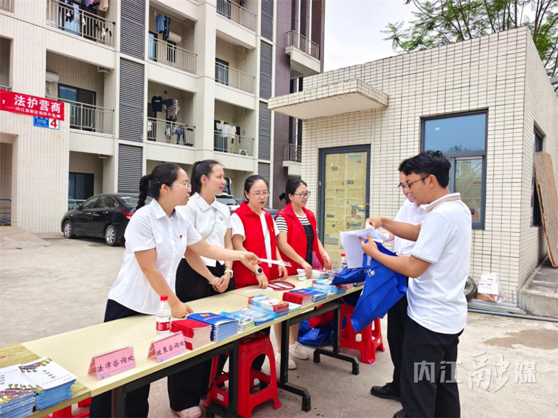 本次活动共发放《民法典政策解读》《民法典与生活同行》《公共法律服务手册》《内江市补充工伤保险政策解读》等15种资料500余份,发放普法宣传手提袋、普法宣传扇等小礼品230余份,提供法律咨询8人次,政策解答12人次。