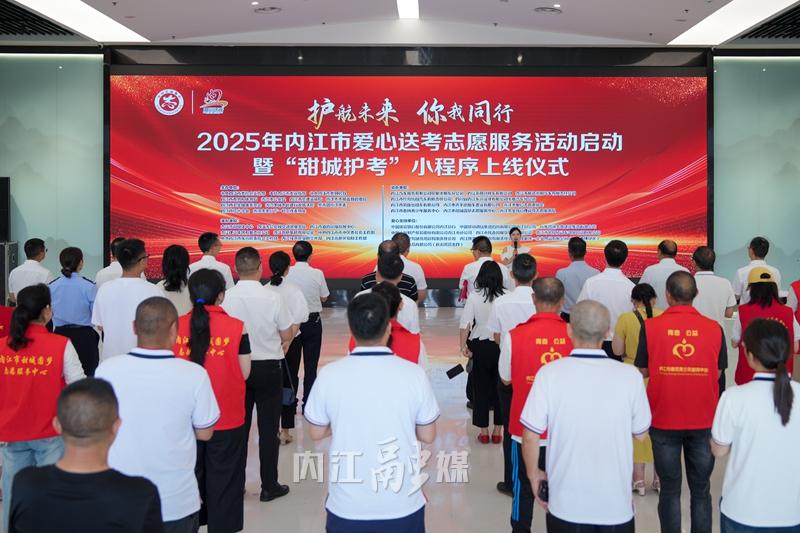 6月3日,2025年内江市“护航未来 你我同行”爱心送考志愿服务活动启动暨“甜城护考”小程序上线仪式举行。