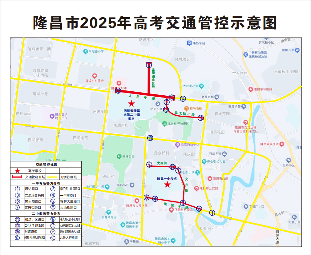 二中考点:人民中路和坊二号门、大北街与春光路交叉路口
