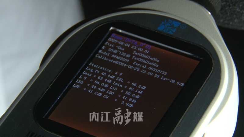 在内江六中兴隆校区,市生态环境局监测人员邱林权指着噪声测量仪上的数据告诉记者:“现在的数值是48.4(分贝),我们这个片区被划定为二类区,标准是50分贝,现在是达标的”。