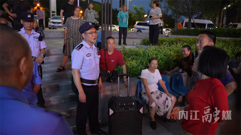 当晚8点,内江经开区公安分局靖民派出所副所长吴小强带领辖区网格员在辖区内进行拉网式巡查。在奥特莱斯广场,一群广场舞爱好者正随着音乐跳舞。吴小强急忙挥手示意大家停下:“各位叔叔阿姨,不好意思,马上高考了,这几天就先别跳广场舞了,让孩子们能安静地复习和休息。”大家主动收起了音响设备。