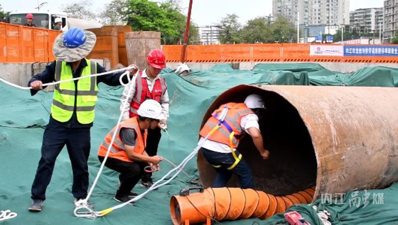 防汛抗洪演练则模拟强降雨导致工地积水倒灌险情,应急队伍快速完成沙袋围堵、排水抢险、人员疏散等抢险科目,充分展现了应对突发汛情的协同作战能力。