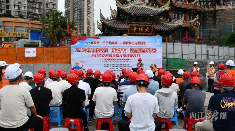 6月5日上午,2025年东兴区住建领域“安全生产月”启动暨应急演练活动在内江市龙凼沟排涝设施建设项目现场举行。东兴区住建局相关负责人、各在建项目监理、施工单位分管领导、项目负责人等参加活动。